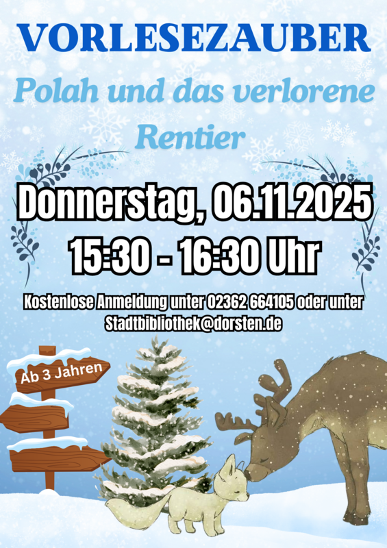Der Eintritt ist frei, eine Anmeldung unter 02362 66-4101 oder unter stadtbibliothek@dorsten.de ist aber erforderlich.